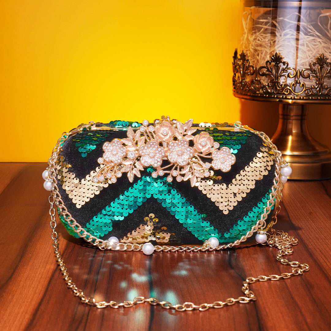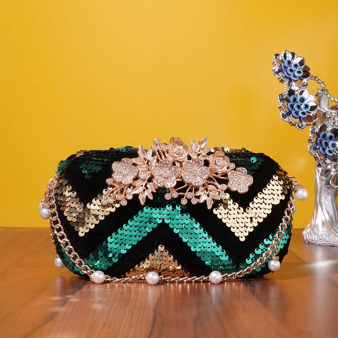 Enhance your evening look with our Black Partywear Clutches. These elegant clutches add a touch of sophistication to any outfit. Made with high-quality materials, they are perfect for any formal event or special occasion. Elevate your style with our stylish party wear clutches.